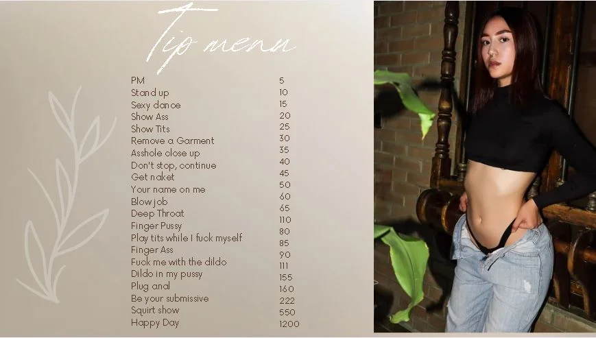 打屁股, 狗爬式, 阿嘿顏, 情色舞蹈, 駱駝趾, 老二評分, 指交, 髒話, 戀足癖, 羞辱, 戶外, 皮革, 辦公室, 無上裝, 女牛仔, 硬核